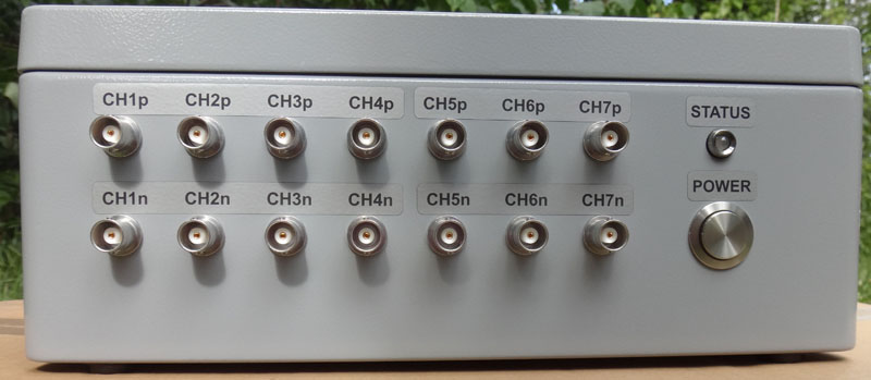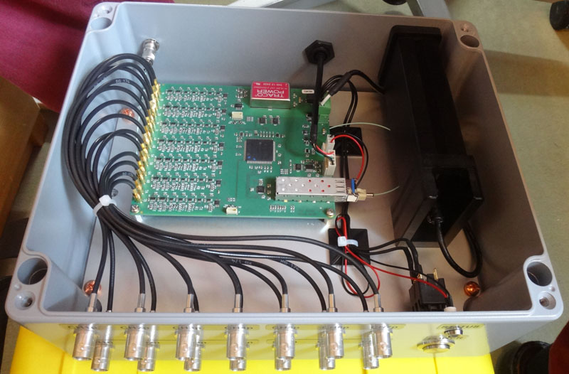 In der "ADU" Einheit werden die Signale nach Vorverstärkung und Filterung simultan mit je 16Bit bei 1